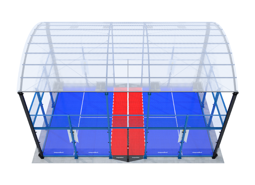 Origin Roofed Padbol Kort, çelik konstrüksiyon, temperli cam ve galvanizli tel örgü panellerle çevrili 6x10 metrelik bir sahadır. Modüler PVC veya opsiyonel sentetik çim zemin ile inşa edilen bu model, polikarbon çatı ve LED aydınlatma içerir. Uluslararası padbol standartlarına göre tasarlanan kort, dış mekan kullanımı için dayanıklılık, konfor ve güvenlik sağlar.